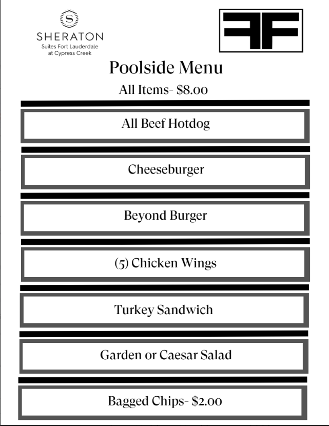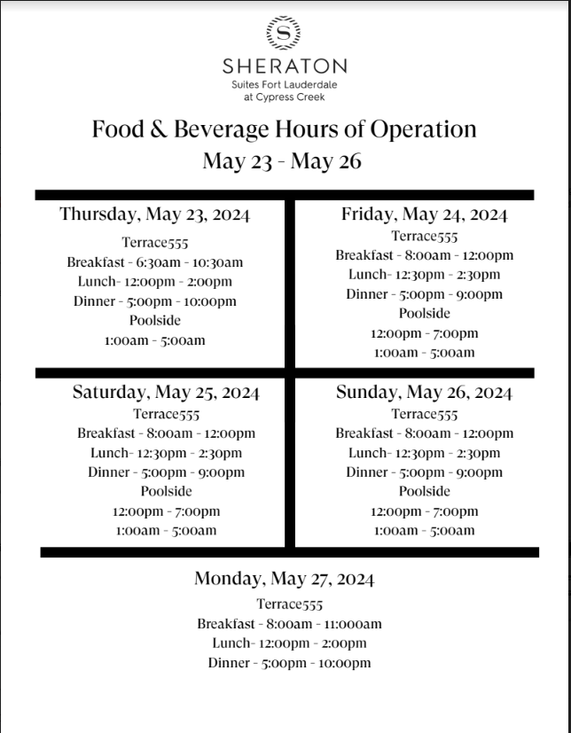 SHERATON SUITES OFFERS A FULL COMPREHENSIVE BREAKFAST, LUNCH AND DINNER MENU WHICH YOU MAY VIEW HERE